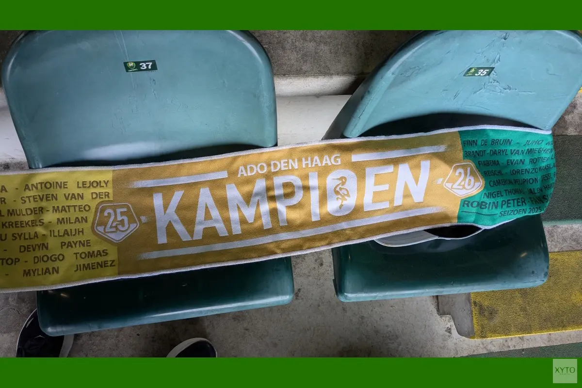 DEN HAAG – ADO Den Haag heeft vrijdagavond in het eigen WerkTalent Stadion op feestelijke wijze de kampioensschaal in ontvangst genomen. De ploeg, die al verzekerd was van de titel, sloot de avond af met een overtuigende overwinning op RKC.